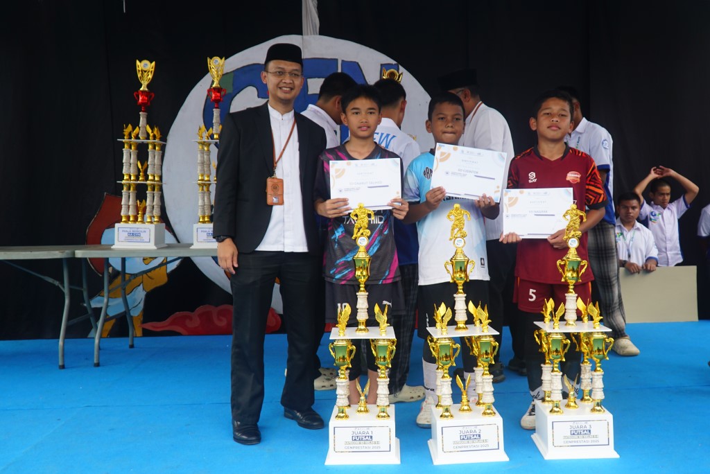Potret tim futsal SD DT memenangkan piala penghargaan juara satu saat penutupan Generasi Prestasi (GenPres) pada (13/10/2025) di Lapangan Eco Pesantren 1 Daarut Tauhiid.